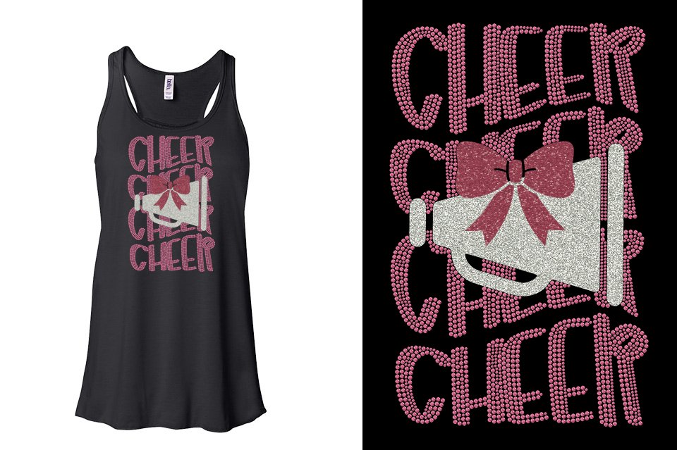 CHEER CHEER CHEER CHEER glitter rhinestones Youth Flowy Racerback Tank