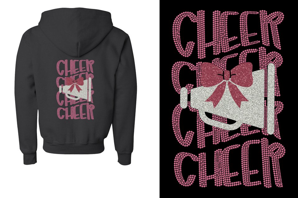 CHEER CHEER CHEER CHEER glitter rhinestones Youth Unisex Zip Hoodie